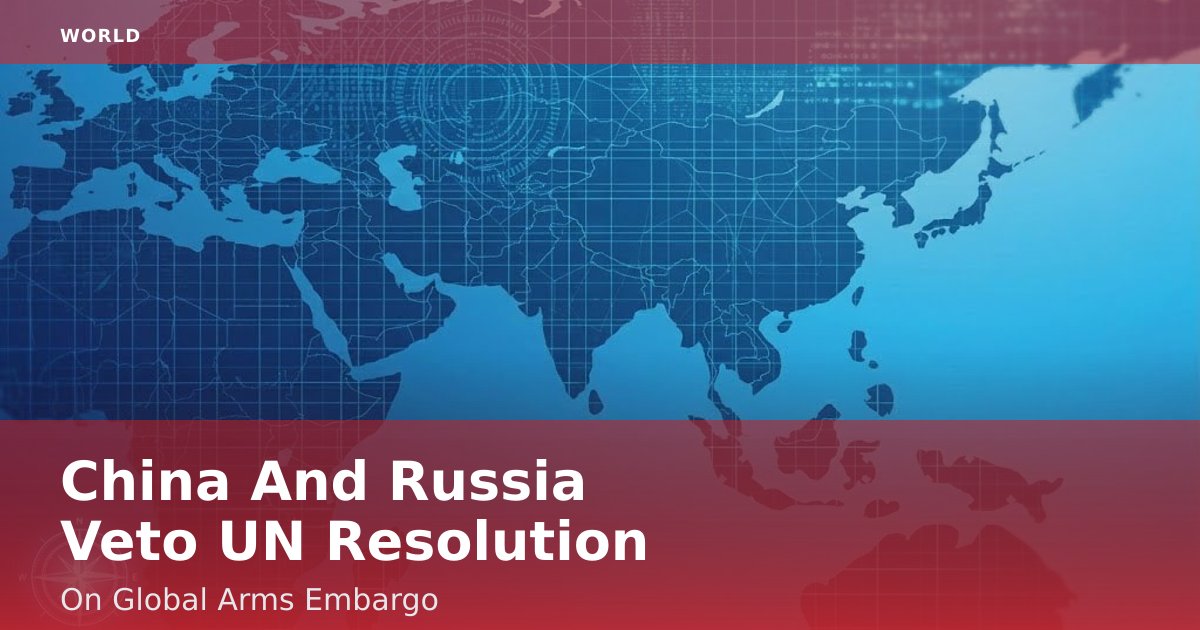 China and Russia vetoed a United Nations Security Council resolution on Tuesday aimed at imposing a global arms embargo on conflict zones. The resolution, proposed by the United States and supported by several Western nations, sought to curb the flow of weapons into regions experiencing prolonged violence. The veto has sparked widespread criticism and renewed debates over the role of major powers in global peacekeeping efforts.